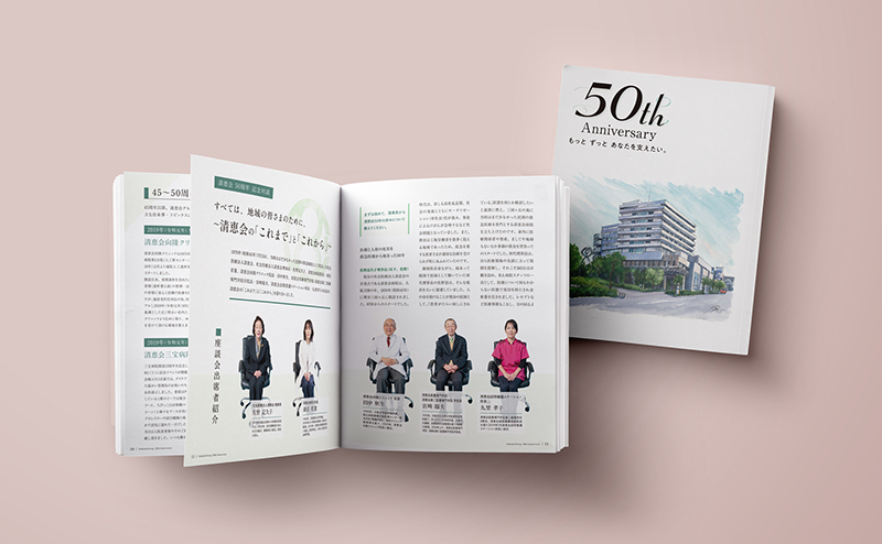社会医療法⼈清恵会創立50年を記念した冊子が完成しました。 各施設にて皆様に配布しておりますので、お手に取っていただければ幸いです。