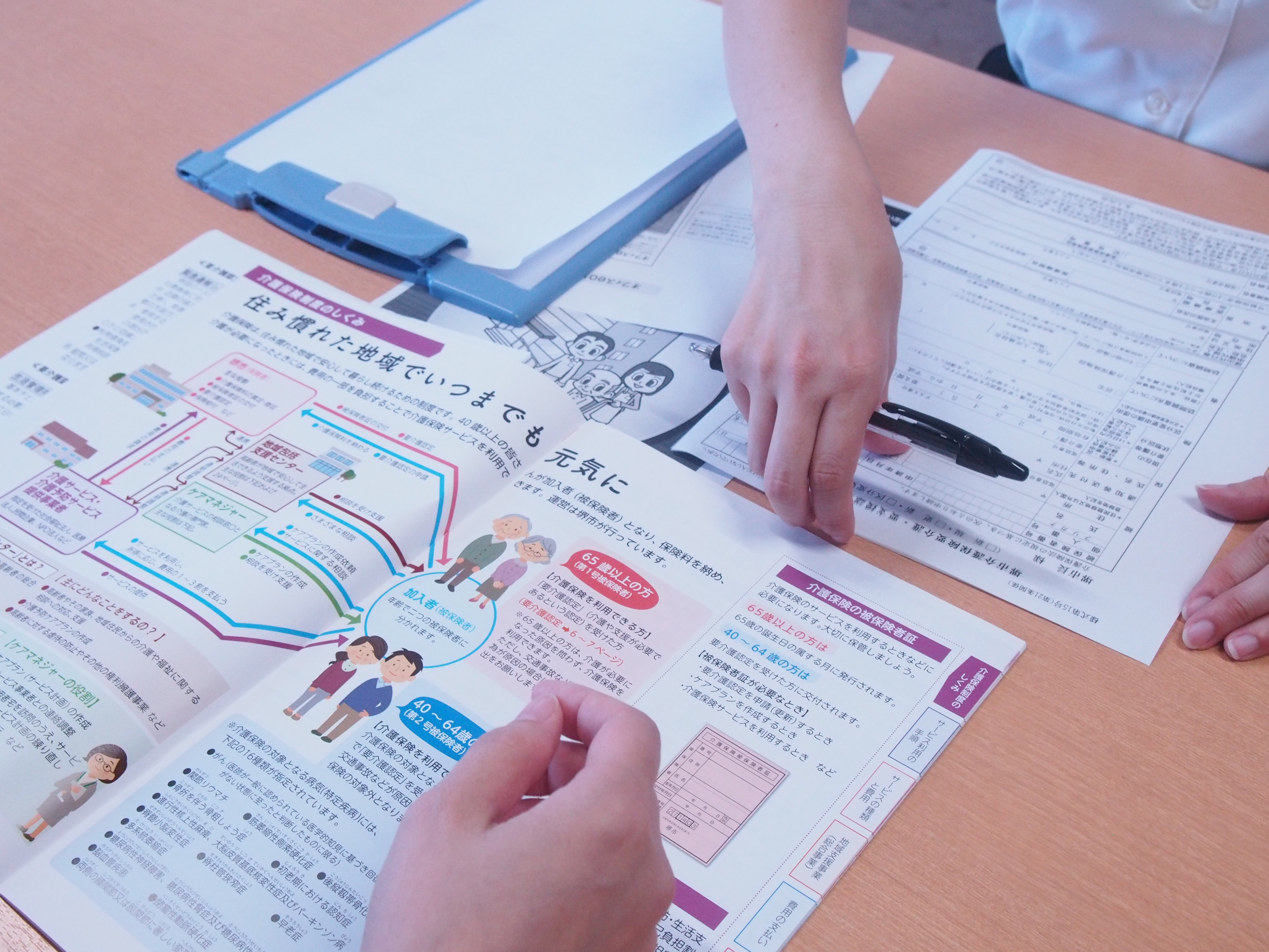 介護支援専門員(ケアマネージャー)が介護に関するご相談をお聞きし、介護認定の申請代行や、ケアプランの作成、介護サービス利用に関するお手続きなど、介護や生活支援が必要な方のお手伝いをさせていただきます。