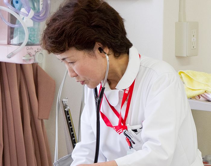 糖尿病看護認定看護師の役割は、患者様が糖尿病と上手に付き合いながら生活していけるよう支援すること。血糖測定データから治療プログラムの調整、食事・運動・薬物療法における管理・精神的支援・フットケア等、多岐にわたります。それと同時に、患者様やご家族に対して療養生活や治療に関する相談にも応じます。患者様一人一人がその人らしい療養生活を送ることができるよう努めています。