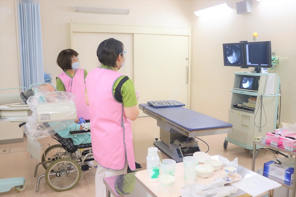 当院では脳血管疾患等によって食べ物・飲み物が上手く飲み込めなくなる嚥下障害に対して、言語聴覚士がリハビリテーションを実施しています。