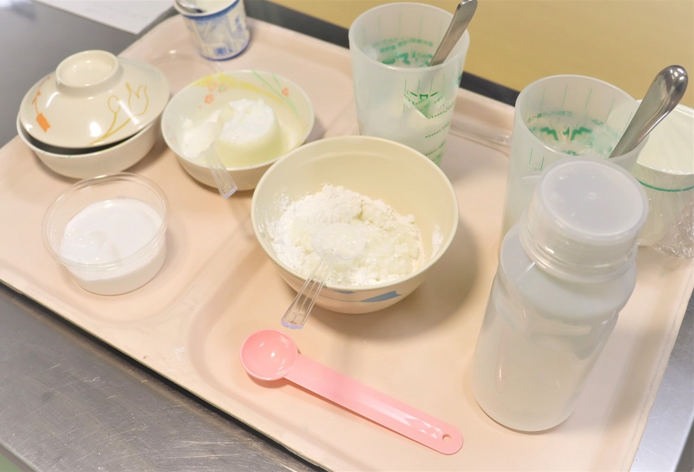 食べる為に必要な筋力(舌・口唇・頬)の強化、誤嚥してしまった時に食物を吐き出す練習を行います。