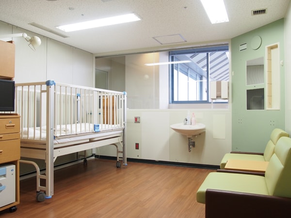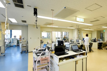 | 診療科の受付と待合(写真は小児科) | HCU(高度治療疾)